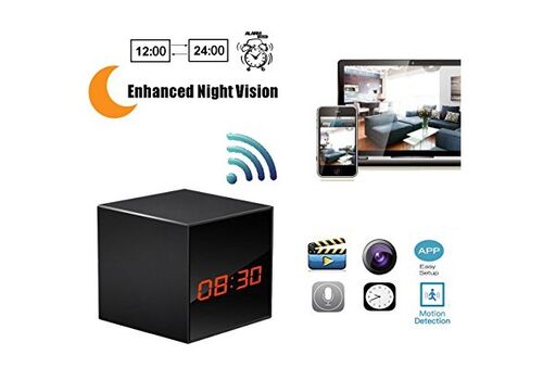 - ENHANCED NIGHT VISION:This Hidden camera with two IR led inside with invisible infrared light that the Night vision distance up to 8 meters. It disguised as a clock make the people can not notice it. Smart clock is the perfect for your home, office, business, or wherever you need covert security to see and hear everything.System requirements: ipod touch, iphoto, or ipad with IOS 6.0 or highter or Android device with version 4.0 or higher.Watch your home on yor smartphone or tablet form anywhere.